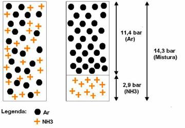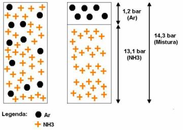 Também, a pressão parcial dos gases na mistura é diretamente proporcional ao volume de cada gás. Assim, se um sistema de refrigeração é contaminado com cerca de 10% de ar em volume, 10% da pressão total é devido ao ar. O interessante é que a amônia se comporta de acordo à sua pressão parcial e não ao total de pressão do sistema.