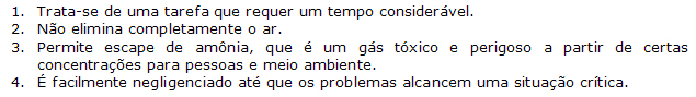 Em paralelo ao desperdício da amônia, a purga manual trás as seguintes desvantagens: