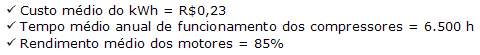 - Potência real dos compressores em kw considerando a existência de ar = 1.854 kw.